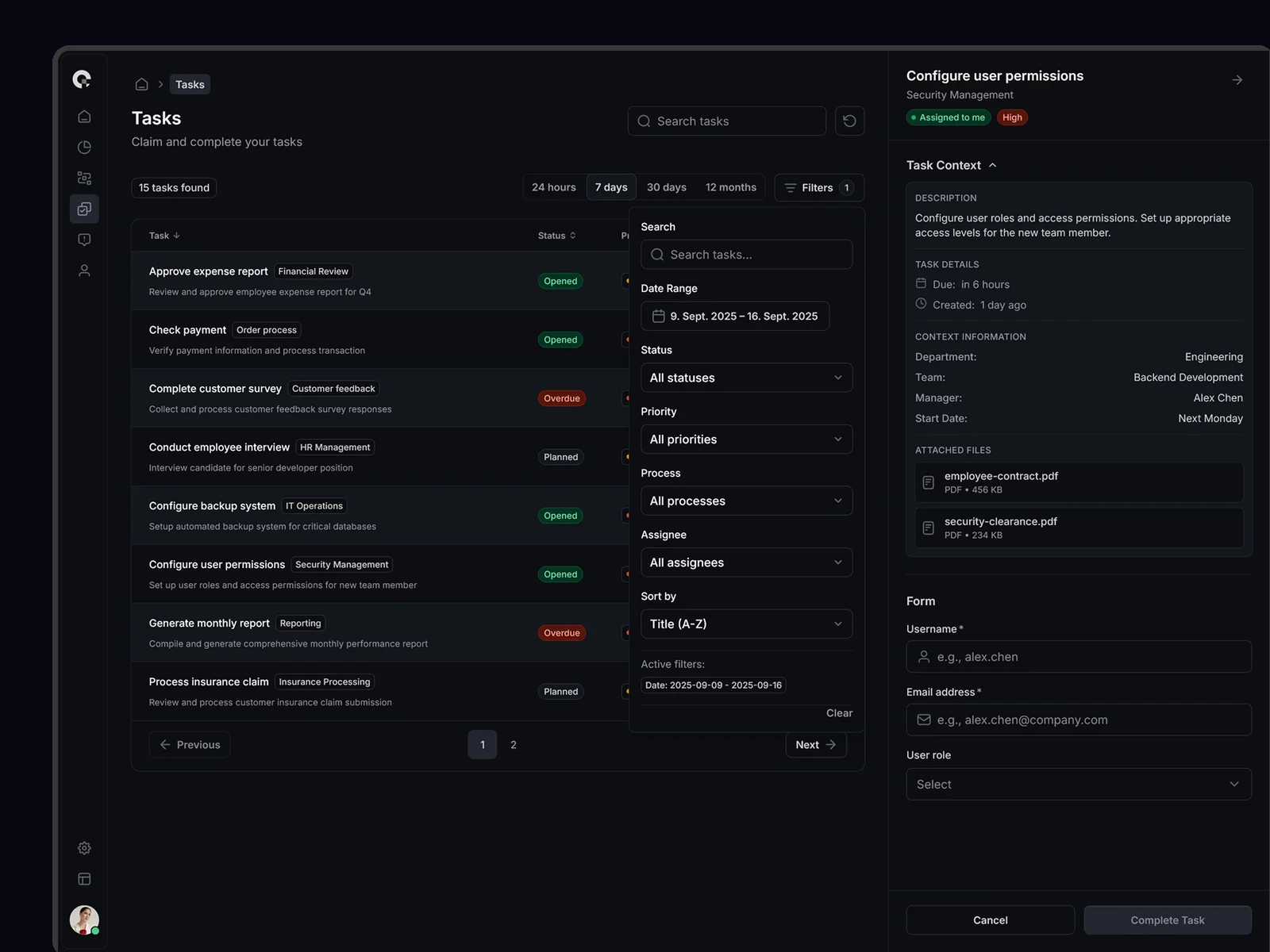 CAMUNDA task management interface with dynamic forms and intelligent validation.